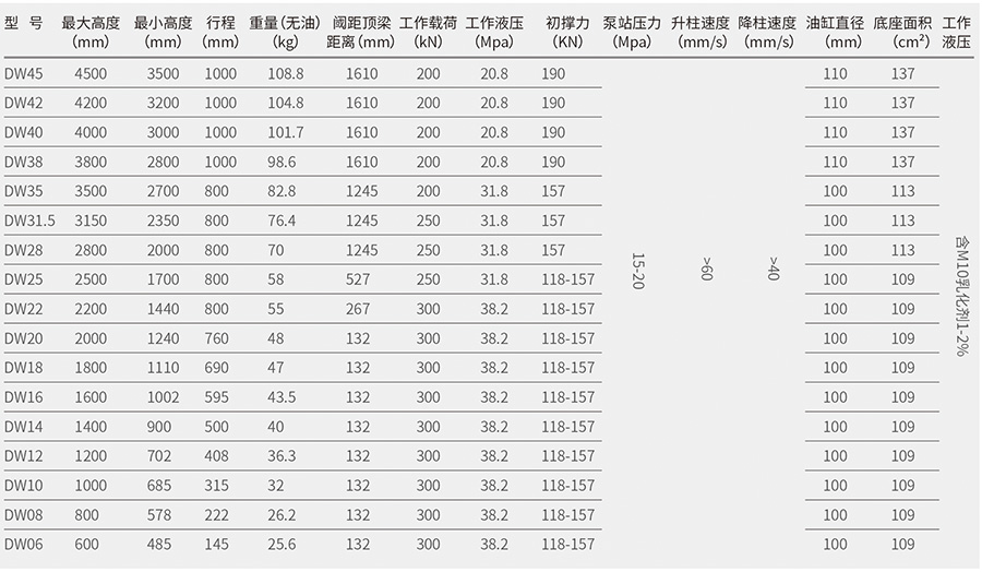 DWX06-45型外注式單體液壓支柱主要技術(shù)特征